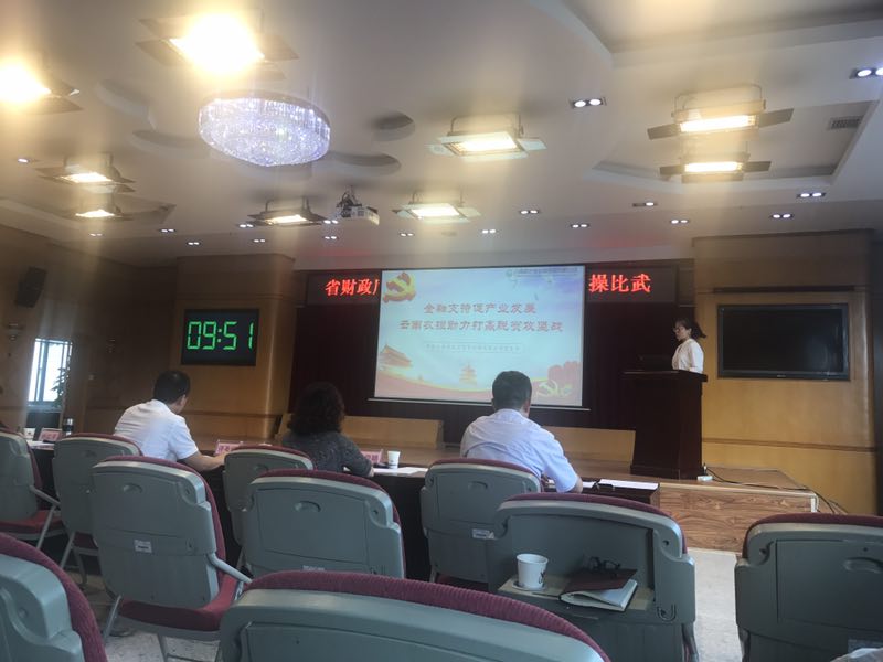 2018年8月22日,公司黨支部積極參加廳機(jī)關(guān)組織的讀書(shū)活動(dòng)。李學(xué)寧同志代表公司參加省財(cái)政廳“雙微”實(shí)操比武,以《金融支持促產(chǎn)業(yè)發(fā)展 云南農(nóng)擔(dān)助力打贏脫貧攻堅(jiān)戰(zhàn)》為主題,講述農(nóng)擔(dān)公司如何以產(chǎn)業(yè)扶貧助力打贏脫貧攻堅(jiān)戰(zhàn),為云南“三農(nóng)”添磚加瓦。