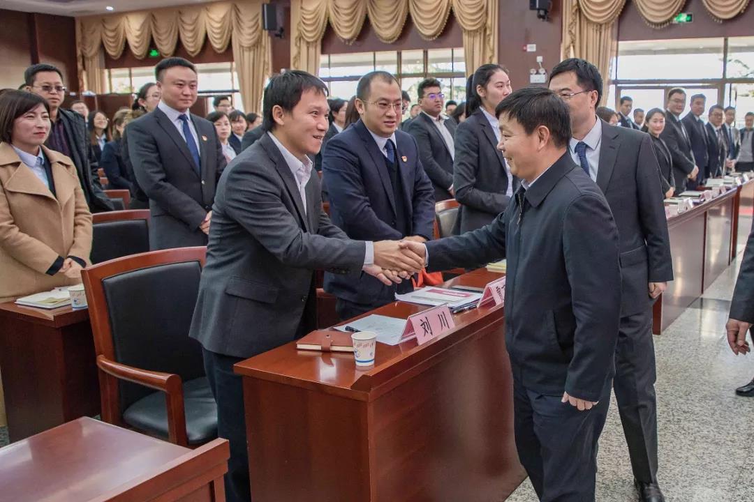 在總結(jié)會會場,張巖松廳長與省農(nóng)擔(dān)公司優(yōu)秀員工親切握手,一一詢問大家的工作情況。張巖松廳長對2018年省農(nóng)擔(dān)公司取得的不俗成績給予了充分肯定。他表示,全體農(nóng)擔(dān)員工按照省委、省政府的安排部署,開拓創(chuàng)新、銳意進(jìn)取,機(jī)構(gòu)覆蓋全省16個(gè)州市,業(yè)務(wù)覆蓋118個(gè)縣,圓滿完成新增涉農(nóng)貸款擔(dān)保50億的任務(wù),是大家共同努力、辛勤工作的成果,值得鼓勵和祝賀。