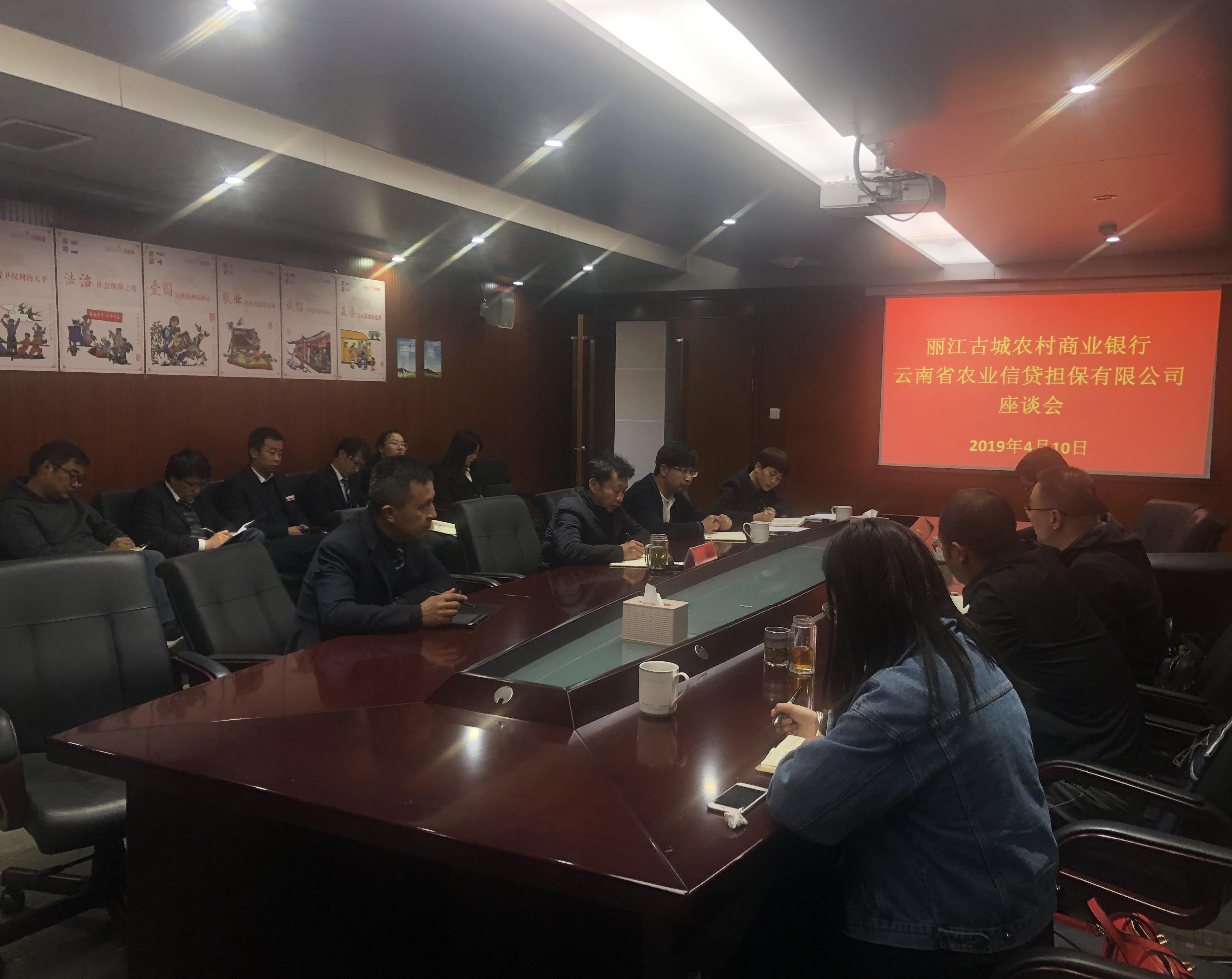 下午與古城農(nóng)商行董事長蔡云波,信貸部總經(jīng)理鄭樹立,及各支行行長開展座談會。農(nóng)商行董事長蔡云波詳細(xì)介紹了古城農(nóng)商行的基本情況,指出農(nóng)商行在三農(nóng)有一定的地位優(yōu)勢,涉農(nóng)客戶群體廣,希望雙方加強(qiáng)對接,推進(jìn)業(yè)務(wù)發(fā)展,共同解決三農(nóng)“融資難,融資貴”的問題。副總經(jīng)理廖寅皓向古城農(nóng)商行詳細(xì)介紹了公司的基本情況,業(yè)務(wù)準(zhǔn)入標(biāo)準(zhǔn)及公司現(xiàn)階段業(yè)務(wù)發(fā)展情況,表示公司一直以來都重視與農(nóng)信社體系的對接,重視與農(nóng)信社的合作,指出目前麗江辦與古城農(nóng)商行業(yè)務(wù)增速較為緩慢,項目數(shù)量相對落后,希望此次座談形成新的共識,在2019年有新突破,新開展,積極推動業(yè)務(wù)開展。
