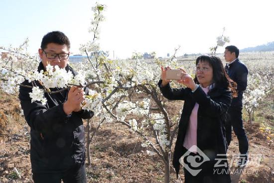 陽春時(shí)節(jié),行走在楚雄彝族自治州牟定縣鳳屯鎮(zhèn)颯馬場(chǎng)的梨園間,綴滿枝頭的梨花迎風(fēng)怒放,淡雅清香撲面而來,讓人心曠神怡。