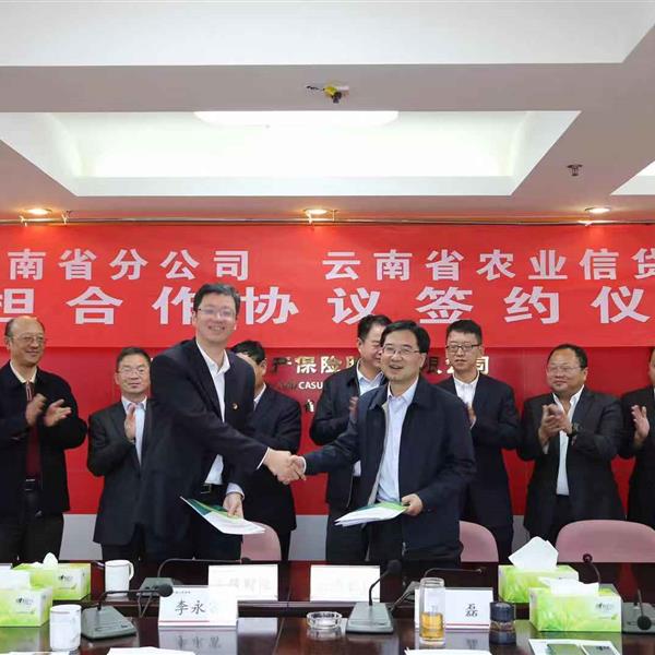 10月19日下午,公司與中國人保財險云南省分公司舉行了保擔(dān)合作協(xié)議簽約儀式。